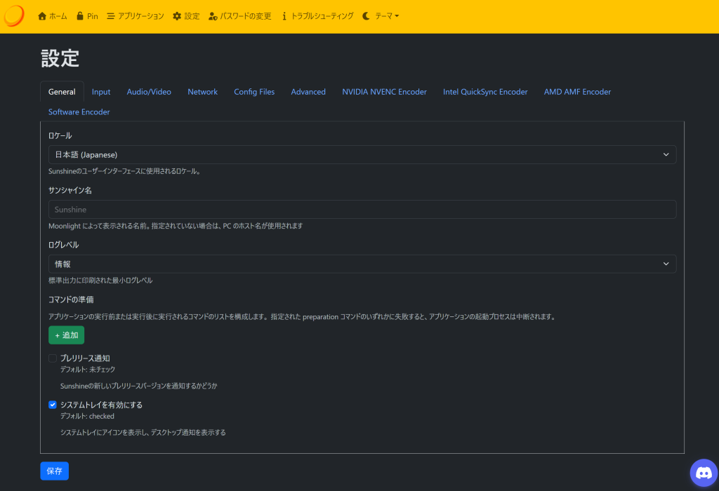 Sunshine 初期設定(Web UI)