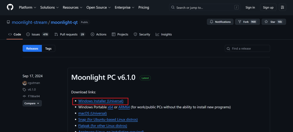 ノートPC側:Moonlight のインストール